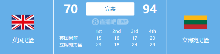 立陶宛94-70轻取英国,无比轻松顺利拿下揭幕战的胜利。